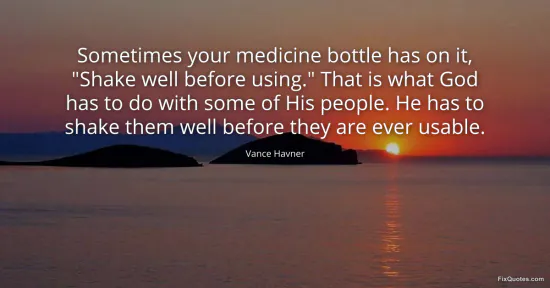 Havner, Vance. (2026, January 16). Sometimes your medicine bottle has on it, "Shake well before using." That is what God has to do with some of His people. He has to shake them well before they are ever usable. FixQuotes. https://fixquotes.com/quotes/sometimes-your-medicine-bottle-has-on-it-shake-110498/