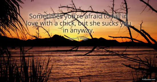 Hagar, Sammy. (2026, January 16). Sometimes you're afraid to fall in love with a chick, but she sucks you in anyway. FixQuotes. https://fixquotes.com/quotes/sometimes-youre-afraid-to-fall-in-love-with-a-109873/