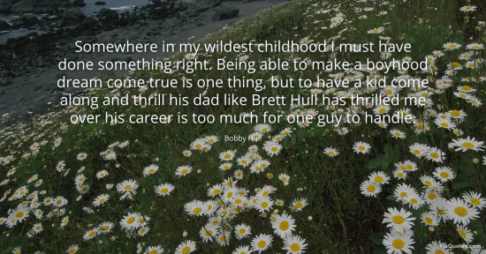 Hull, Bobby. "Somewhere in my wildest childhood I must have done something right. Being able to make a boyhood dream come true is one thing, but to have a kid come along and thrill his dad like Brett Hull has thrilled me over his career is too much for one guy to handle." FixQuotes. January 17, 2026. https://fixquotes.com/quotes/somewhere-in-my-wildest-childhood-i-must-have-41325/.