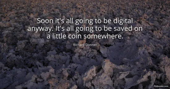 Donner, Richard. (2026, January 17). Soon it's all going to be digital anyway. It's all going to be saved on a little coin somewhere. FixQuotes. https://fixquotes.com/quotes/soon-its-all-going-to-be-digital-anyway-its-all-76293/