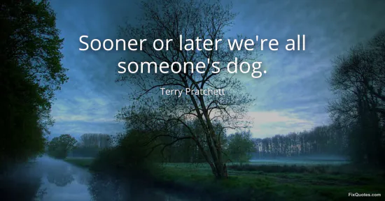 Pratchett, Terry. "Sooner or later we're all someone's dog." FixQuotes. January 15, 2026. https://fixquotes.com/quotes/sooner-or-later-were-all-someones-dog-23688/.