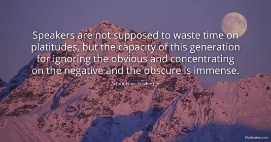 Sulzberger, Arthur Hays. "Speakers are not supposed to waste time on platitudes, but the capacity of this generation for ignoring the obvious and concentrating on the negative and the obscure is immense." FixQuotes. January 18, 2026. https://fixquotes.com/quotes/speakers-are-not-supposed-to-waste-time-on-8967/.
