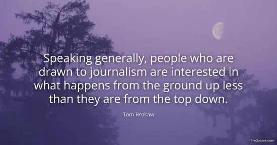 Brokaw, Tom. "Speaking generally, people who are drawn to journalism are interested in what happens from the ground up less than they are from the top down." FixQuotes. January 16, 2026. https://fixquotes.com/quotes/speaking-generally-people-who-are-drawn-to-105436/.