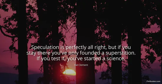 Clement, Hal. (2026, January 14). Speculation is perfectly all right, but if you stay there you've only founded a superstition. If you test it, you've started a science. FixQuotes. https://fixquotes.com/quotes/speculation-is-perfectly-all-right-but-if-you-169418/
