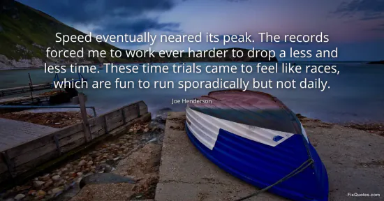 Henderson, Joe. (2026, January 15). Speed eventually neared its peak. The records forced me to work ever harder to drop a less and less time. These time trials came to feel like races, which are fun to run sporadically but not daily. FixQuotes. https://fixquotes.com/quotes/speed-eventually-neared-its-peak-the-records-146570/