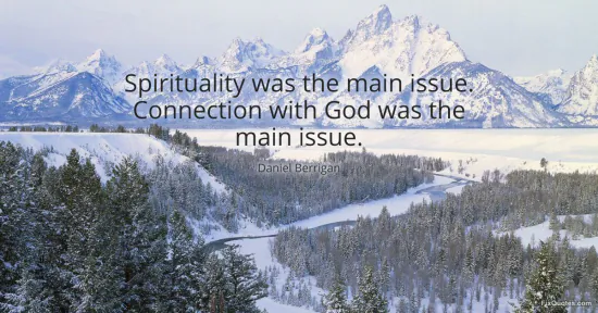 Berrigan, Daniel. "Spirituality was the main issue. Connection with God was the main issue." FixQuotes. January 15, 2026. https://fixquotes.com/quotes/spirituality-was-the-main-issue-connection-with-158044/.