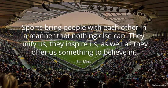 Mintz, Ben. (2026, January 14). Sports bring people with each other in a manner that nothing else can. They unify us, they inspire us, as well as they offer us something to believe in. FixQuotes. https://fixquotes.com/quotes/sports-bring-people-together-in-a-way-that-172431/