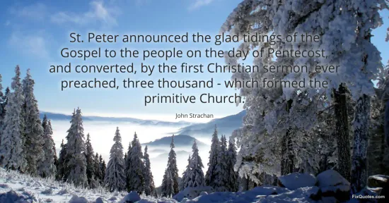 Strachan, John. "St. Peter announced the glad tidings of the Gospel to the people on the day of Pentecost, and converted, by the first Christian sermon, ever preached, three thousand - which formed the primitive Church." FixQuotes. January 16, 2026. https://fixquotes.com/quotes/st-peter-announced-the-glad-tidings-of-the-gospel-125404/.