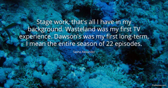 Alexander, Sasha. "Stage work, that's all I have in my background. Wasteland was my first TV experience. Dawson's was my first long-term, I mean the entire season of 22 episodes." FixQuotes. January 16, 2026. https://fixquotes.com/quotes/stage-work-thats-all-i-have-in-my-background-102210/.