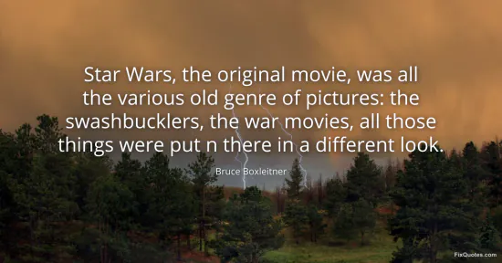 Boxleitner, Bruce. "Star Wars, the original movie, was all the various old genre of pictures: the swashbucklers, the war movies, all those things were put n there in a different look." FixQuotes. January 17, 2026. https://fixquotes.com/quotes/star-wars-the-original-movie-was-all-the-various-41355/.