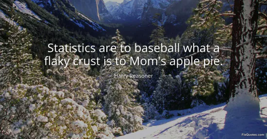 Reasoner, Harry. "Statistics are to baseball what a flaky crust is to Mom's apple pie." FixQuotes. January 15, 2026. https://fixquotes.com/quotes/statistics-are-to-baseball-what-a-flaky-crust-is-79310/.