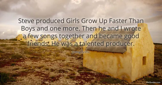 Griffin, Jimmy. "Steve produced Girls Grow Up Faster Than Boys and one more. Then he and I wrote a few songs together and became good friends. He was a talented producer." FixQuotes. January 16, 2026. https://fixquotes.com/quotes/steve-produced-girls-grow-up-faster-than-boys-and-92606/.