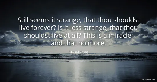 Young, Edward. (2026, January 17). Still seems it strange, that thou shouldst live forever? Is it less strange, that thou shouldst live at all? This is a miracle; and that no more. FixQuotes. https://fixquotes.com/quotes/still-seems-it-strange-that-thou-shouldst-live-36593/