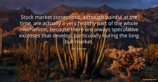 Chernow, Ron. "Stock market corrections, although painful at the time, are actually a very healthy part of the whole mechanism, because there are always speculative excesses that develop, particularly during the long bull market." FixQuotes. January 16, 2026. https://fixquotes.com/quotes/stock-market-corrections-although-painful-at-the-102819/.