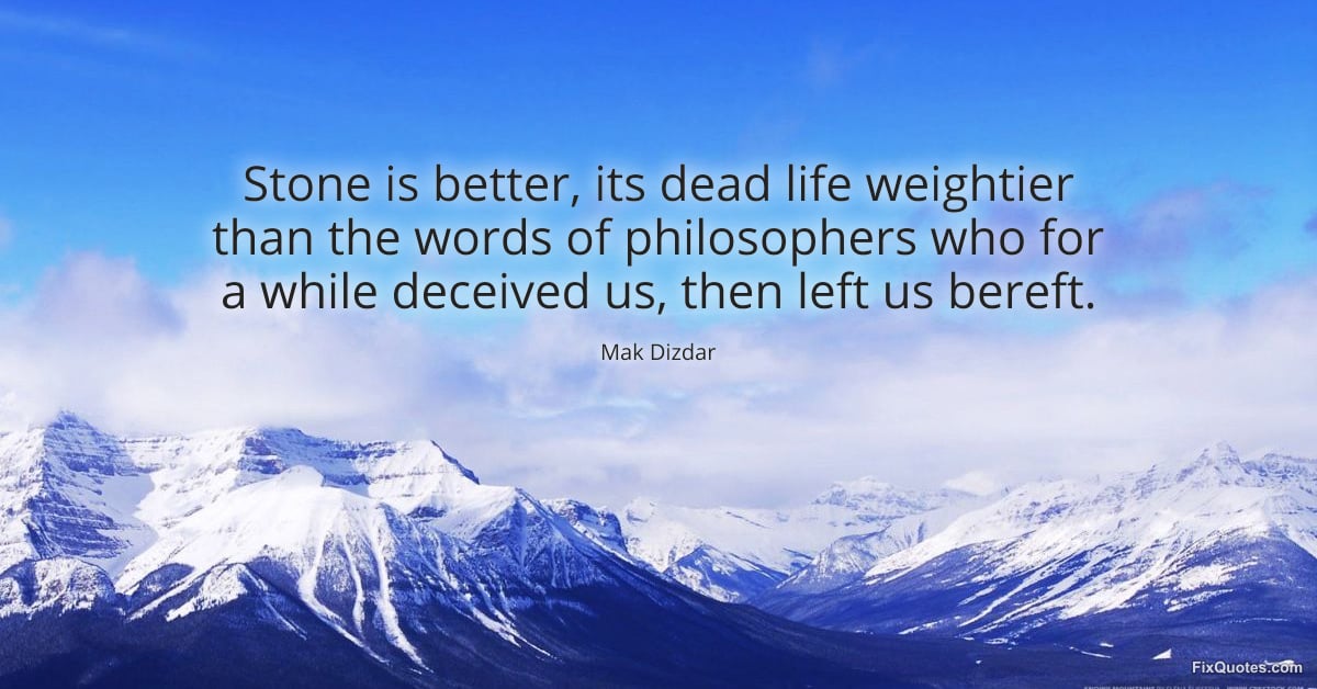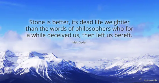 Dizdar, Mak. (2026, March 13). Stone is better, its dead life weightier than the words of philosophers who for a while deceived us, then left us bereft. FixQuotes. https://fixquotes.com/quotes/stone-is-better-its-dead-life-weightier-than-the-186063/