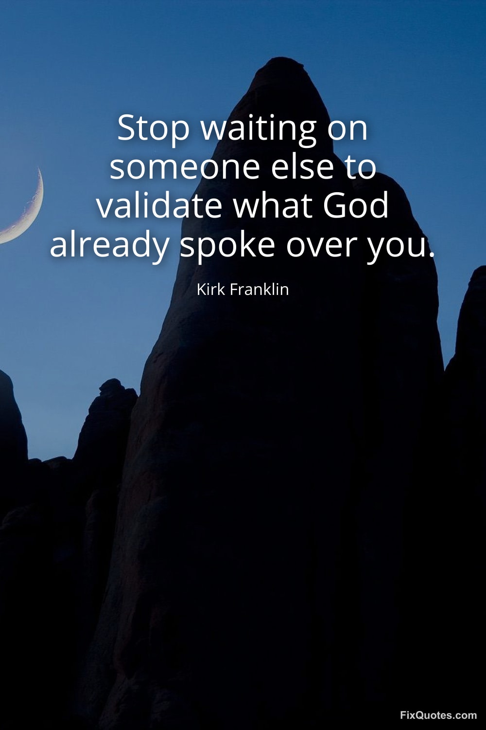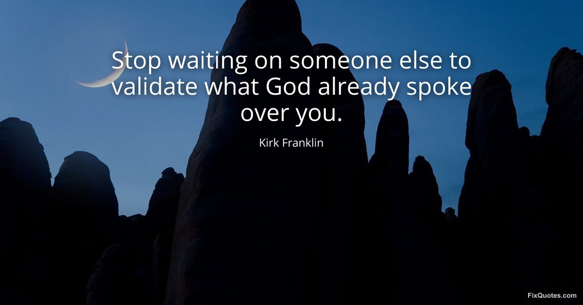Franklin, Kirk. (2026, January 30). Stop waiting on someone else to validate what God already spoke over you. FixQuotes. https://fixquotes.com/quotes/stop-waiting-on-someone-else-to-validate-what-god-184834/