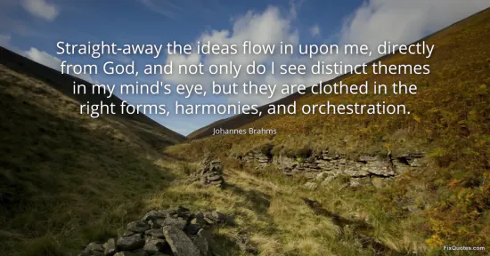 Brahms, Johannes. "Straight-away the ideas flow in upon me, directly from God, and not only do I see distinct themes in my mind's eye, but they are clothed in the right forms, harmonies, and orchestration." FixQuotes. February 20, 2026. https://fixquotes.com/quotes/straight-away-the-ideas-flow-in-upon-me-directly-146027/.