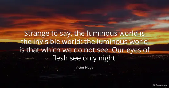 Hugo, Victor. (2026, January 16). Strange to say, the luminous world is the invisible world; the luminous world is that which we do not see. Our eyes of flesh see only night. FixQuotes. https://fixquotes.com/quotes/strange-to-say-the-luminous-world-is-the-137808/