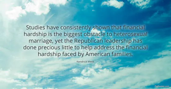 “Studies have consistently shown” is doing a lot of work here: Kendrick Meek borrows the lab coat of social science to frame marriage not as a moral question but as an economic one. That move matters because it yanks the debate away from culture-war abstractions and drops it into the checkbook reality of rent, wages, health insurance, and child care. The intent is clear: if marriage rates are a concern, then the “family values” agenda has to be measured in material support, not sermonizing.