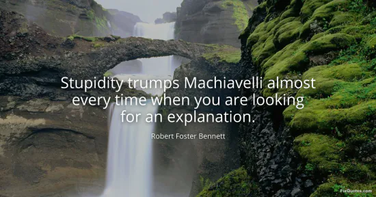 Bennett, Robert Foster. (2026, January 15). Stupidity trumps Machiavelli almost every time when you are looking for an explanation. FixQuotes. https://fixquotes.com/quotes/stupidity-trumps-machiavelli-almost-every-time-161428/