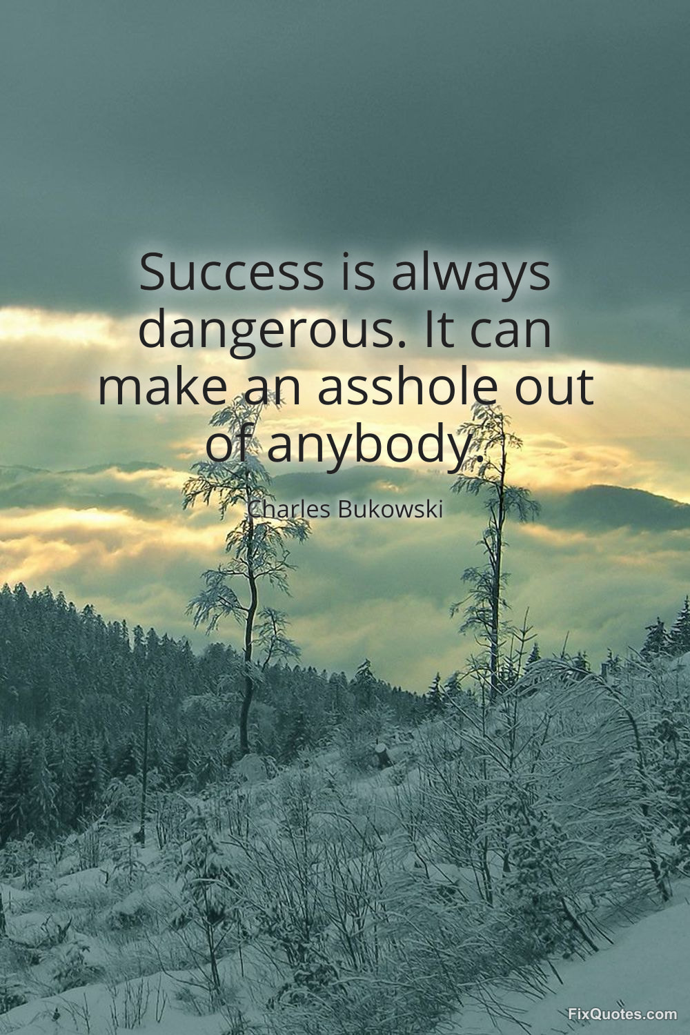 Bukowski, Charles. (2026, February 10). Success is always dangerous. It can make an asshole out of anybody. FixQuotes. https://fixquotes.com/quotes/success-is-always-dangerous-it-can-make-an-185134/