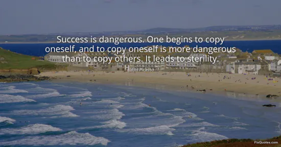 Picasso, Pablo. (2026, January 15). Success is dangerous. One begins to copy oneself, and to copy oneself is more dangerous than to copy others. It leads to sterility. FixQuotes. https://fixquotes.com/quotes/success-is-dangerous-one-begins-to-copy-oneself-9482/