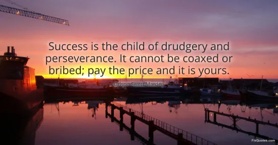 Marden, Orison Swett. (2026, January 17). Success is the child of drudgery and perseverance. It cannot be coaxed or bribed; pay the price and it is yours. FixQuotes. https://fixquotes.com/quotes/success-is-the-child-of-drudgery-and-perseverance-38072/