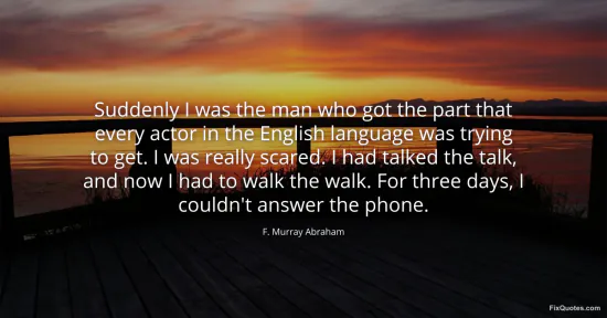 Abraham, F. Murray. "Suddenly I was the man who got the part that every actor in the English language was trying to get. I was really scared. I had talked the talk, and now I had to walk the walk. For three days, I couldn't answer the phone." FixQuotes. January 17, 2026. https://fixquotes.com/quotes/suddenly-i-was-the-man-who-got-the-part-that-53256/.
