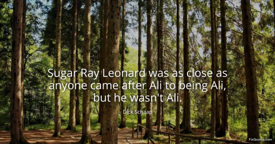 Schaap, Dick. "Sugar Ray Leonard was as close as anyone came after Ali to being Ali, but he wasn't Ali." FixQuotes. January 15, 2026. https://fixquotes.com/quotes/sugar-ray-leonard-was-as-close-as-anyone-came-141384/.