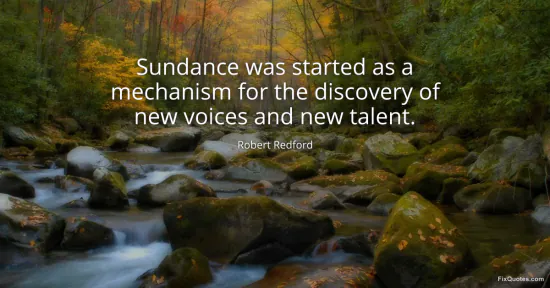 "Sundance was started as a mechanism for the discovery of new voices and new talent." FixQuotes, 15 Jan. 2026, https://fixquotes.com/quotes/sundance-was-started-as-a-mechanism-for-the-164927/. Accessed 12 Feb. 2026.