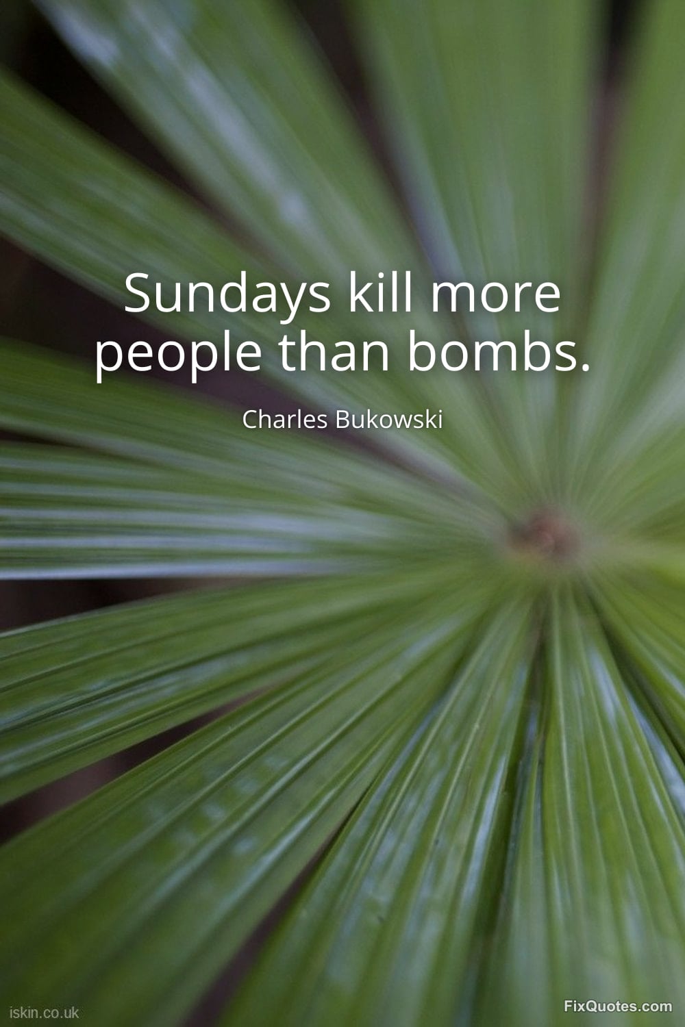 Bukowski, Charles. (2026, February 10). Sundays kill more people than bombs. FixQuotes. https://fixquotes.com/quotes/sundays-kill-more-people-than-bombs-185172/