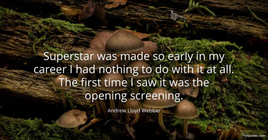 Webber, Andrew Lloyd. "Superstar was made so early in my career I had nothing to do with it at all. The first time I saw it was the opening screening." FixQuotes. January 15, 2026. https://fixquotes.com/quotes/superstar-was-made-so-early-in-my-career-i-had-160940/.