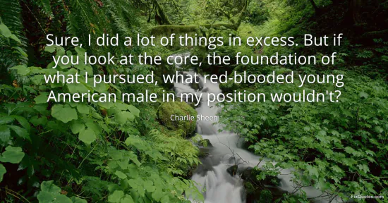Sheen, Charlie. (2026, January 18). Sure, I did a lot of things in excess. But if you look at the core, the foundation of what I pursued, what red-blooded young American male in my position wouldn't? FixQuotes. https://fixquotes.com/quotes/sure-i-did-a-lot-of-things-in-excess-but-if-you-16445/