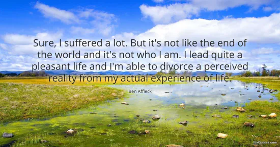 Affleck, Ben. (2026, January 17). Sure, I suffered a lot. But it's not like the end of the world and it's not who I am. I lead quite a pleasant life and I'm able to divorce a perceived reality from my actual experience of life. FixQuotes. https://fixquotes.com/quotes/sure-i-suffered-a-lot-but-its-not-like-the-end-of-40461/