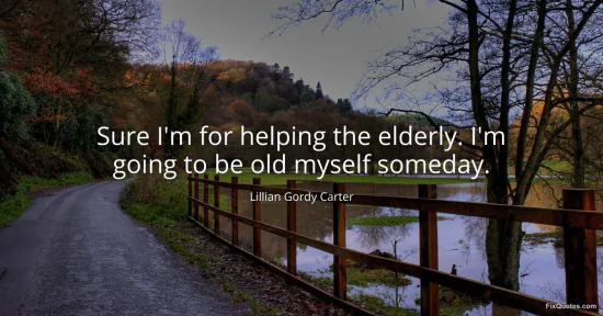 Carter, Lillian Gordy. "Sure I'm for helping the elderly. I'm going to be old myself someday." FixQuotes. January 16, 2026. https://fixquotes.com/quotes/sure-im-for-helping-the-elderly-im-going-to-be-88484/.