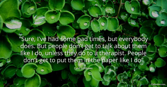 Johnston, Lynn. (2026, February 18). "Sure, I've had some bad times, but everybody does. But people don't get to talk about them like I do, unless they do to a therapist. People don't get to put them in the paper like I do". FixQuotes. https://fixquotes.com/quotes/sure-ive-had-some-bad-times-but-everybody-does-64933/