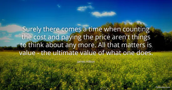 As a novelist writing through the first half of the twentieth century - war, economic upheaval, the collapse of old certainties - Hilton understood how easily people get trained into scarcity thinking. This sentence offers an escape hatch: stop asking what it will cost you, start asking what it will count for. It works because it flatters neither heroism nor martyrdom; it argues for a colder, cleaner form of courage: choosing a life by its meaning, not its manageable downside.