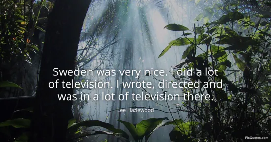 Hazlewood, Lee. "Sweden was very nice. I did a lot of television. I wrote, directed and was in a lot of television there." FixQuotes. January 16, 2026. https://fixquotes.com/quotes/sweden-was-very-nice-i-did-a-lot-of-television-i-103639/.