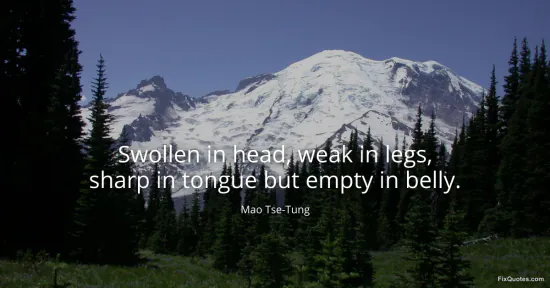 Tse-Tung, Mao. "Swollen in head, weak in legs, sharp in tongue but empty in belly." FixQuotes. January 15, 2026. https://fixquotes.com/quotes/swollen-in-head-weak-in-legs-sharp-in-tongue-but-655/.