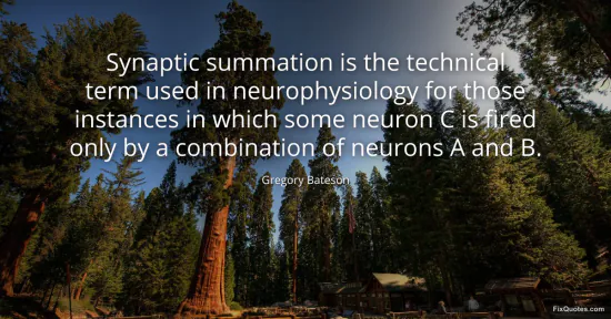 Bateson, Gregory. (2026, January 15). Synaptic summation is the technical term used in neurophysiology for those instances in which some neuron C is fired only by a combination of neurons A and B. FixQuotes. https://fixquotes.com/quotes/synaptic-summation-is-the-technical-term-used-in-142444/