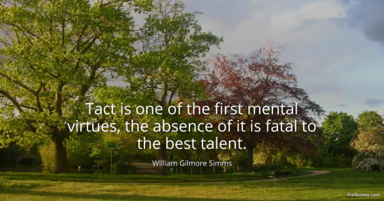 Simms, William Gilmore. (2026, January 17). Tact is one of the first mental virtues, the absence of it is fatal to the best talent. FixQuotes. https://fixquotes.com/quotes/tact-is-one-of-the-first-mental-virtues-the-73634/