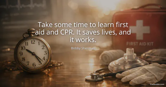 Sherman, Bobby. (2026, February 26). Take some time to learn first aid and CPR. It saves lives, and it works. FixQuotes. https://fixquotes.com/quotes/take-some-time-to-learn-first-aid-and-cpr-it-142231/