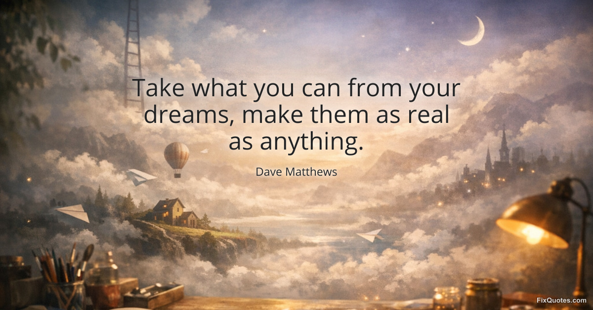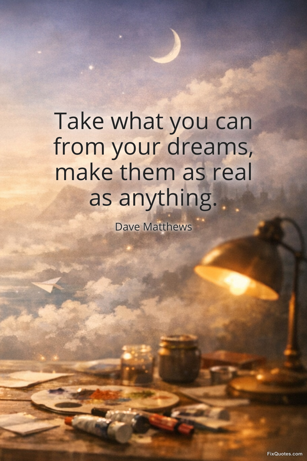 Matthews, Dave. (2026, March 20). Take what you can from your dreams, make them as real as anything. FixQuotes. https://fixquotes.com/quotes/take-what-you-can-from-your-dreams-make-them-as-50972/