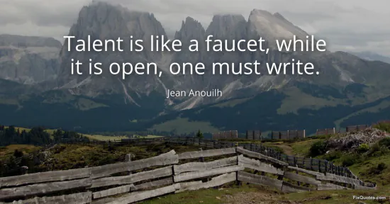 Anouilh, Jean. "Talent is like a faucet, while it is open, one must write." FixQuotes. January 16, 2026. https://fixquotes.com/quotes/talent-is-like-a-faucet-while-it-is-open-one-must-106506/.