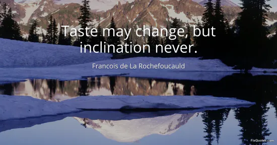 Rochefoucauld, Francois de La. "Taste may change, but inclination never." FixQuotes. January 18, 2026. https://fixquotes.com/quotes/taste-may-change-but-inclination-never-13127/.