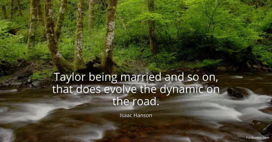 Hanson, Isaac. (2026, January 17). Taylor being married and so on, that does evolve the dynamic on the road. FixQuotes. https://fixquotes.com/quotes/taylor-being-married-and-so-on-that-does-evolve-56198/