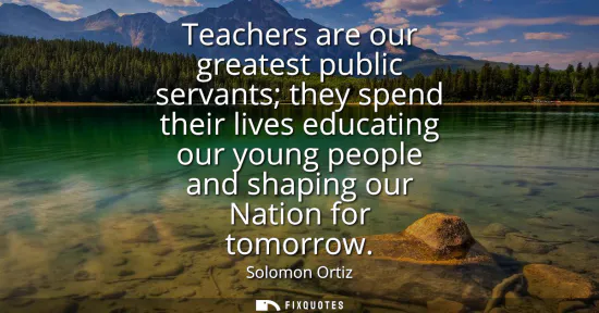 Solomon Ortiz elevates teachers to the civic pantheon by calling them our greatest public servants, placing their work alongside the duties of those who protect and administer the public sphere. The choice of public servants reframes teaching as a vocation rooted in responsibility to the common good. It is not a transactional job but a public trust. That language pushes against a narrow view of education as mere skills delivery and insists on its democratic purpose: cultivating citizens who can think critically, participate responsibly, and sustain a shared national project.