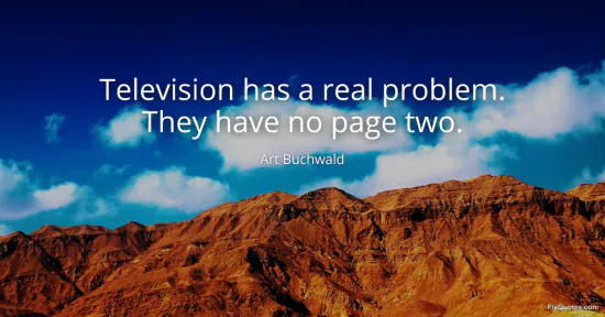 Buchwald, Art. "Television has a real problem. They have no page two." FixQuotes. January 16, 2026. https://fixquotes.com/quotes/television-has-a-real-problem-they-have-no-page-131797/.