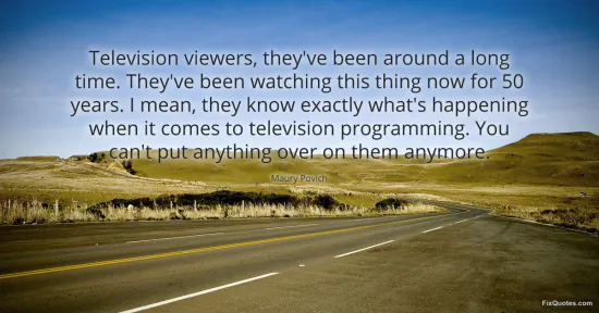 Povich, Maury. "Television viewers, they've been around a long time. They've been watching this thing now for 50 years. I mean, they know exactly what's happening when it comes to television programming. You can't put anything over on them anymore." FixQuotes. January 15, 2026. https://fixquotes.com/quotes/television-viewers-theyve-been-around-a-long-time-168101/.