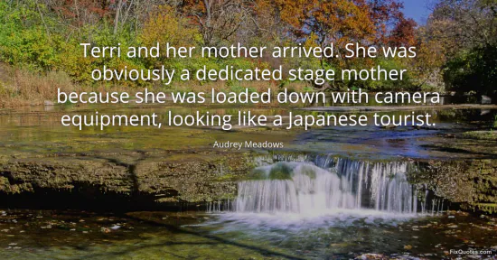 Meadows, Audrey. (2026, January 17). Terri and her mother arrived. She was obviously a dedicated stage mother because she was loaded down with camera equipment, looking like a Japanese tourist. FixQuotes. https://fixquotes.com/quotes/terri-and-her-mother-arrived-she-was-obviously-a-42576/